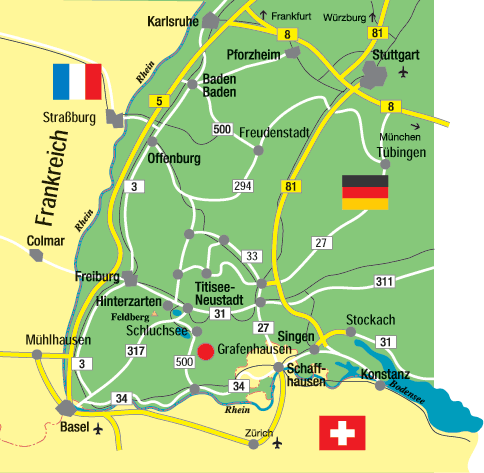 - Aus Richtung A 5/B 31 Freiburg/B 34 Waldshut-Tiengen: B 500